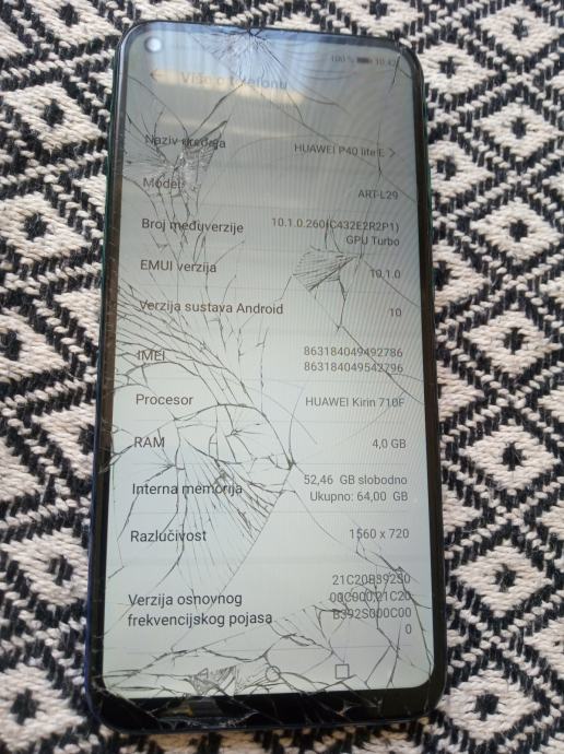 Huawei P40 Lite E,4/64 GB, dual sim,sve mreže--oštećen ali radi