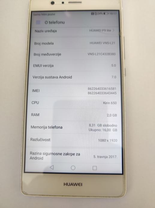 Huawei P9 Lite, sve mreže, bez punjača -malo oštećen