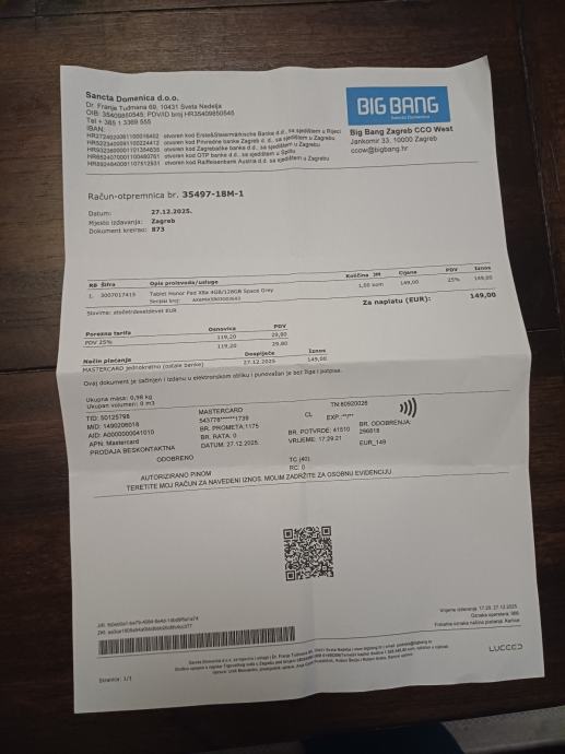 Prodajem potpuno novi Honor pad X8a tablet, zapakiran u originalnu kutiju. Kupljen 27.12.2025 Tablet dolazi sa svim tvorničkim postavkama i spremno je za korištenje odmah nakon raspakiravanja. Idealan je za svakodnevnu uporabu, pregledavanje interneta i multimedijske sadržaje.
