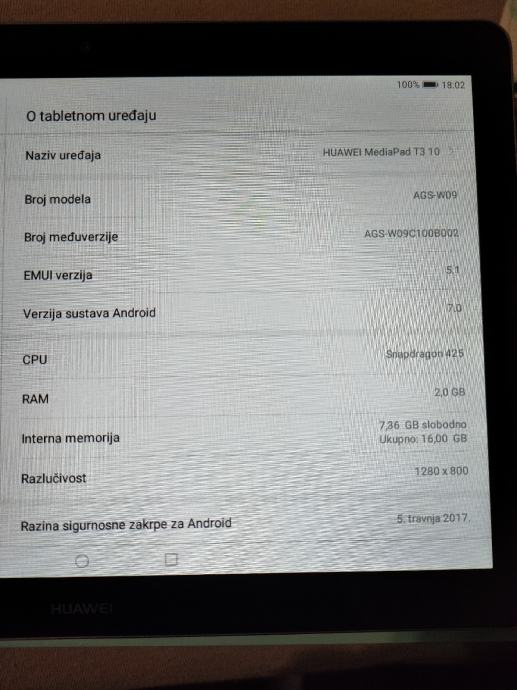 Prodajem Huawei MediaPad T3 10" tablet. Uz njega ide originalna kutija, usb kabel i adapter za punjenje.