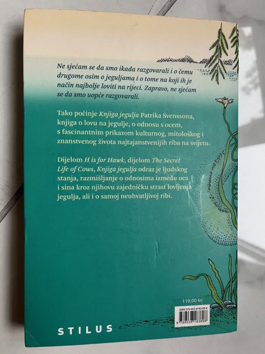 'Ne sjećam se da smo ikada razgovarali i o čemu drugome osim o jeguljama i o tome na koji ih je način najbolje loviti na rijeci. Zapravo, ne sjećam se da smo uopće razgovarali.' Tako počinje Knjiga jegulja Patrika Svenssona, knjiga o lovu na jegulje, o odnosu s ocem, s fascinantnim prikazom kulturnog, mitološkog i znanstvenog života najtajanstvenijih riba na svijetu. Dijelom H is for Hawk, dijelom The Secret Life of Cows, Knjiga jegulja odraz je ljudskog stanja, razmišljanje o odnosima između oca i sina kroz njihovu zajedničku strast lovljenja jegulja, ali i o neuhvatljivoj ribi.