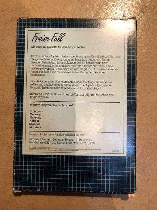 Acorn Electron, Freier fall, igra na kazeti, komplet, prodajem