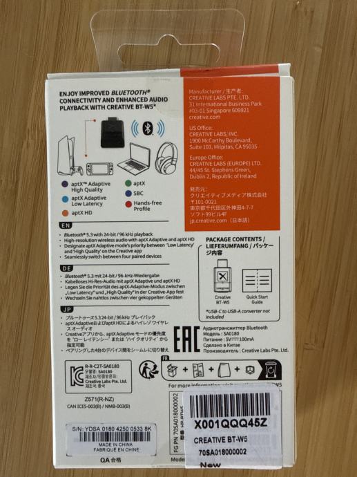 Creative BT-W5 smart Bluetooth 5.3 Audio Transmitter