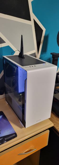Pc je manjih dimenzija Micro ATX s ugrađenim bluetooth i WiFi u matićnu ploću i vrlo je tiho u radu i igrama skoro nećujno.