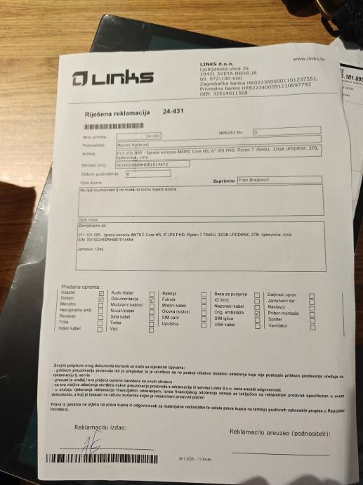 Konzola Antec Core HS 32gb ram 2TB prostor AMD 7840u Win 11 Nov neotvoren garancija 12 mjeseci kupljen 26.07.25