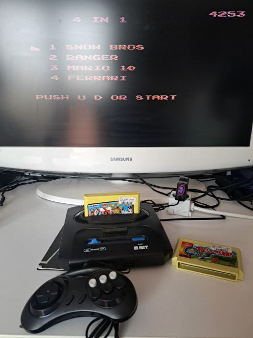 Kao neka kopija Sege. U potpunosti ispravna. Dva đojpeda. Uz konzolu idu i dvije diskete: 4 in 1 game i Tom and Jerry.