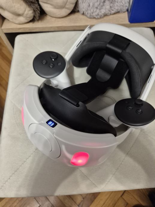 Uz VR dolazi i dodatak zamjenske trake za glavu sa ugrađenom baterijom koja prodižuje igranje do 4 i pol sata a možda i malo više ovisno o tome što igrate. Igrao sam isključivo PCVR preko Wi-Fi mreže tako da nemam kabel za povezivanje no vrlo lako si ga kupite kao i miljon dodataka za quest modele. U prilog ide i orginalna traka za glavu, 2 controllera, punjač i orginalna ambalaža.