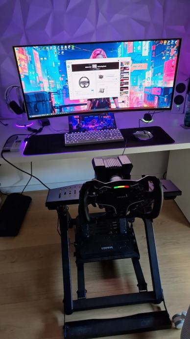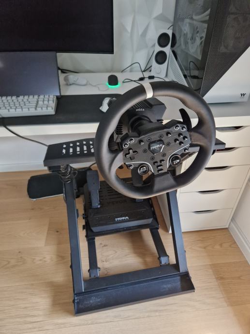 Prodajem moza R5 direct drive wheel, volan sa postoljem i sa papučicama. Dolazi sa dodatnim volanom za F1, braking performance kit za kocnicu, te postoljem za montiranje na stol.