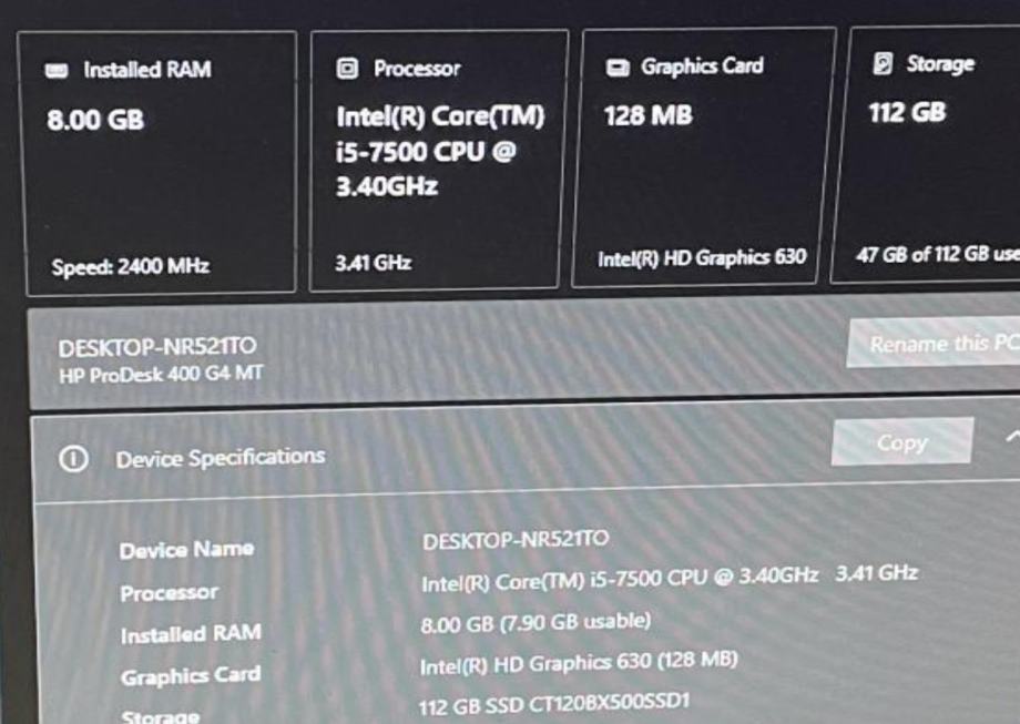 Stolno racunalo hp prodesk i5 7500 8gb ddr4 intel 630 grafika 4k ssd 128gb (170€)