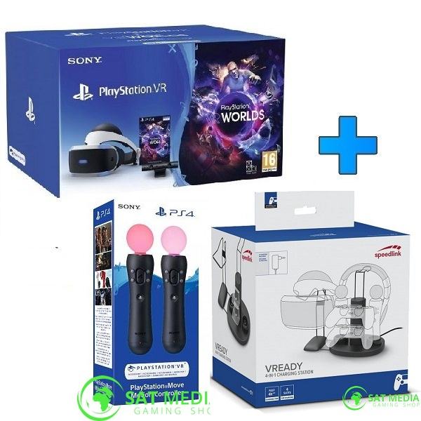PlayStation VR Headset V2 + PS4 Kamera V2 + VR Worlds VCH Mk4+Move Motion controller – Twin pack + Stanica za punjenje Speed Link VReady 4u1 za 2 PS4 kontrolera i 2 PS Move kontrolera