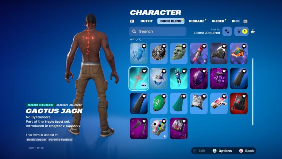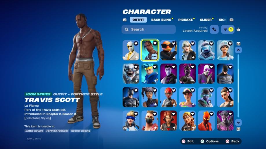 Account ima preko 300 skinova u koji se ubrajaju travis scott i jos par rijetkih skinova i pickaxea