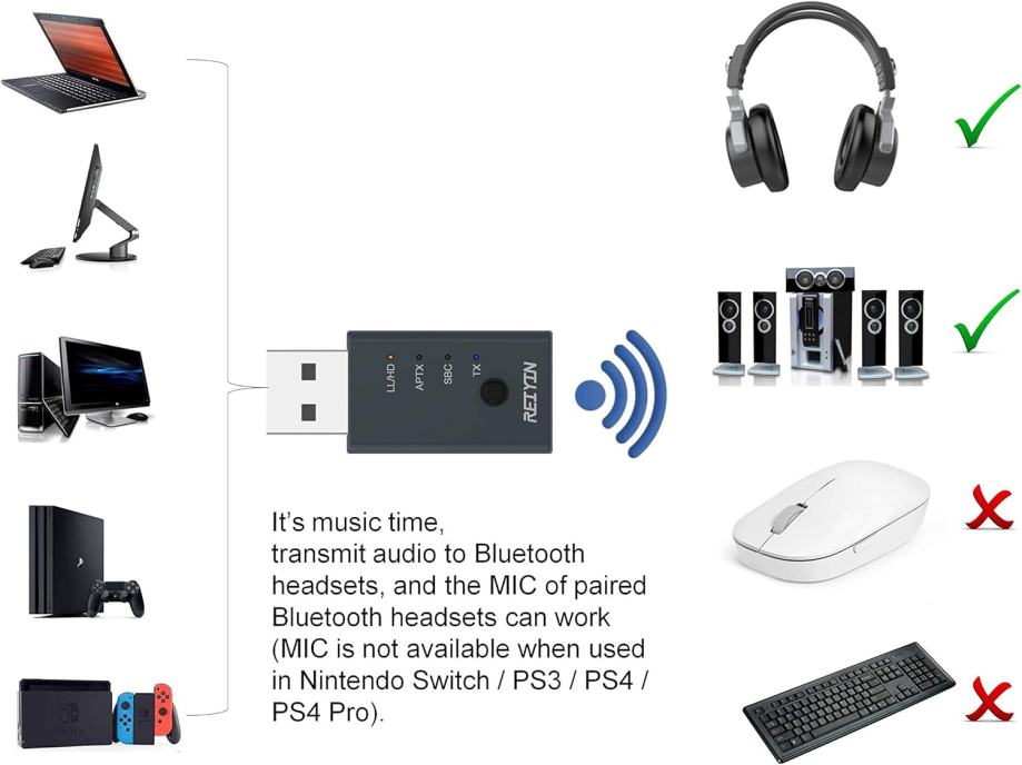 【Bluetooth Audio Transmitter】Transfer audio from the audio output device like PC / Game devices to Bluetooth headphones / speakers / audio system, supports two connection simultaneously. (Note: 1. No data transmission. 2. This product can NOT pair with any mobile phone, tablet or Bluetooth keyboard / mouse; 3. Make sure the Bluetooth headphone you need to pair is not paired with other Bluetooth transmitters like mobile phone, iPad.)