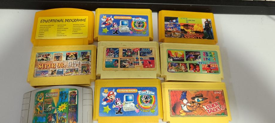 Prodajem rabljene retro igre za konzole u dobrom stanju. Kolekcija sadrži nekoliko klasičnih naslova, uključujući Mario, Duck Tales i edukativne igre. Idealno za kolekcionare i ljubitelje starih igara. Kopija Nitendo igara.