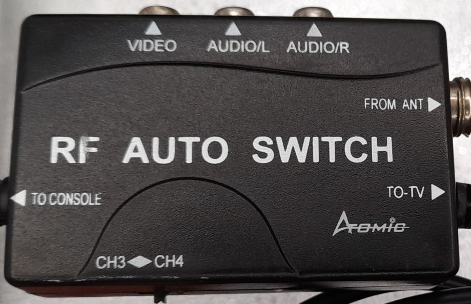 Prodajem RF Auto Switch adapter za spajanje igraćih konzola ili drugih AV uređaja na televizor preko antenskog (RF) ulaza.