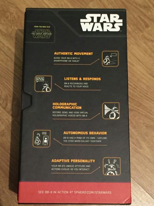 Ima prilagodljivu osobnost koja evoluira kroz Vašu igru. Na temelju vaših interakcija, BB8 će se prikazati niz izraza, a može kreirati i holografske snimke. Upravljanje putem aplikacije ( android ; IOs)
