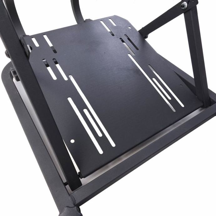 Čvrsti čelični okvir Sim Rig 2 čini stabilnu platformu za intenzivnu trkaću upotrebu. S uobičajenim dimenzijama konzole od 345/405 mm, ovaj okvir je kompatibilan s gotovo svim sportskim sjedalima, dajući korisnicima slobodu da dizajniraju svoju postavku prema osobnim preferencijama.