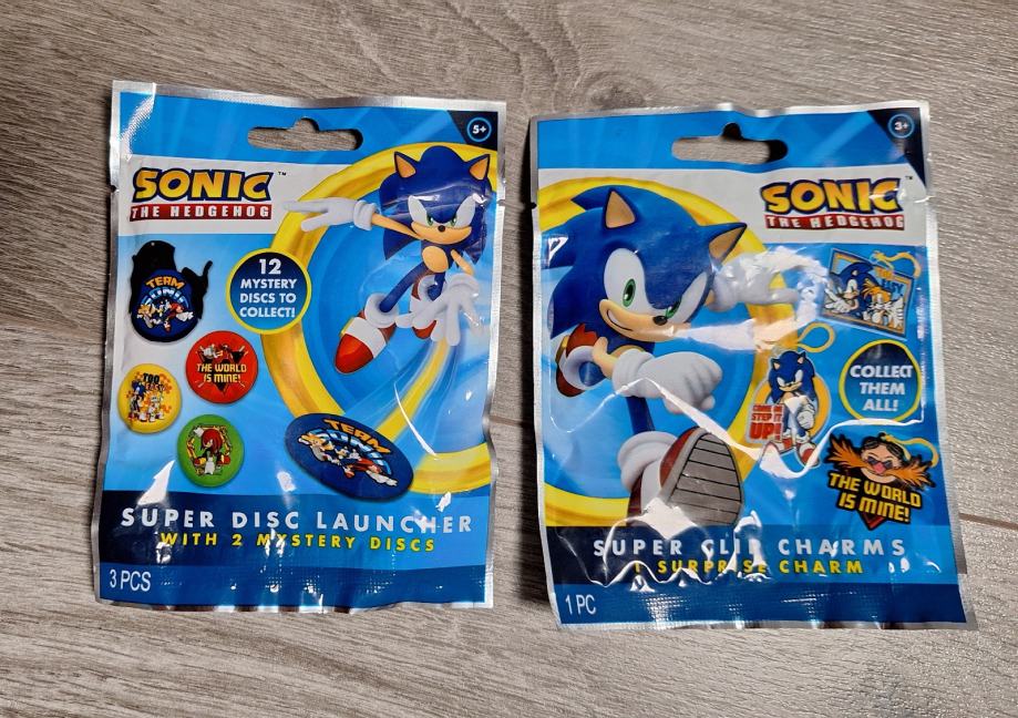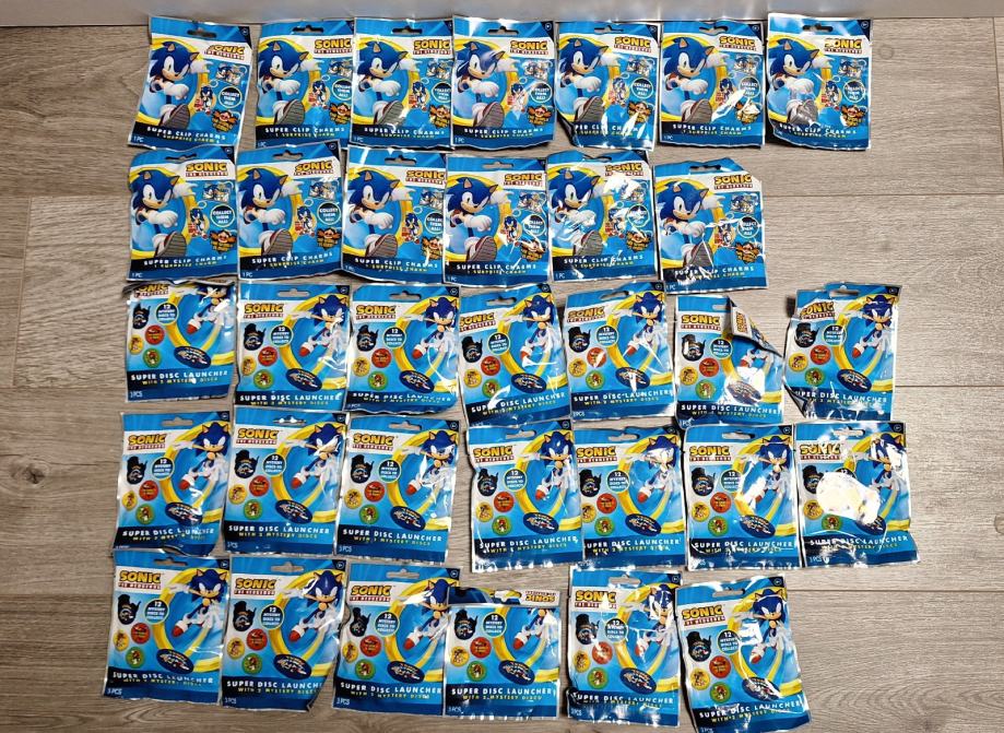 33 zapakirana paketića Sonic privjesaka i diskova.