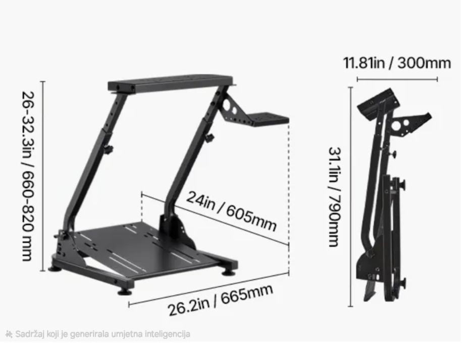 Stalak za volan i pedale, podesivi i sklopivi stalak za simulator, za Logitech G29, G27, G920, G923 te Thrustmaster T300RS, T300GT, T248, TS-PC, TSXW.