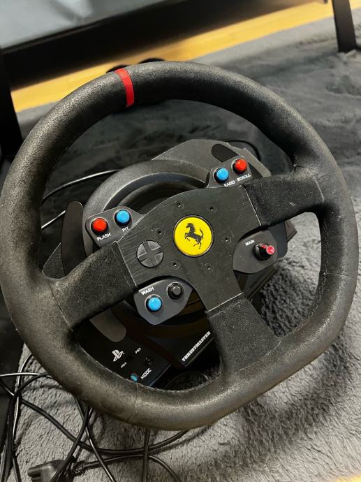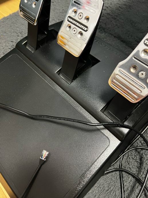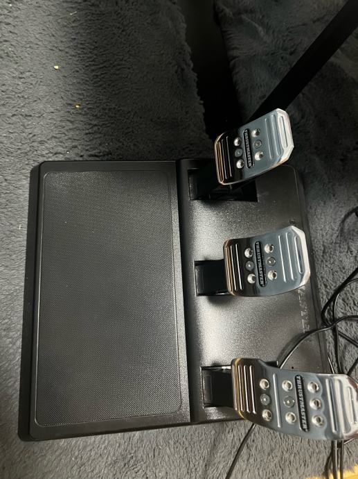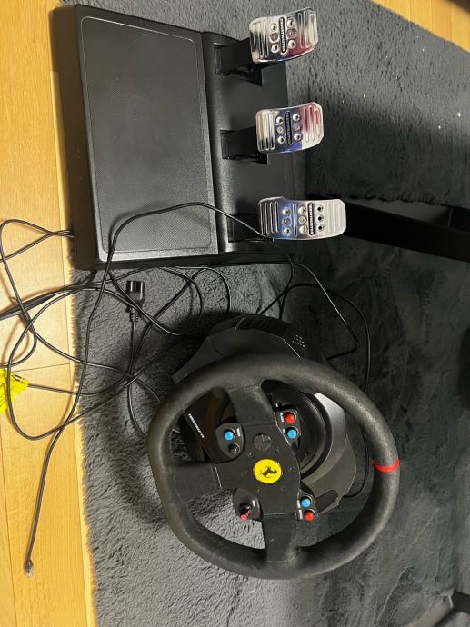 Thrustmaster volan i pedale, koristene, kupljene 12/21 god,prodajemo za djelove ako kome treba, na volanu ne rade neke tipke a na pedalama je slomnjen utor prozirni na kabelu.