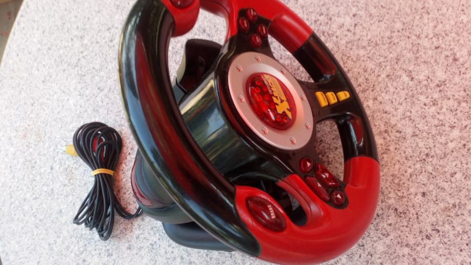 Igraci vibracioni volan za konzolu ili kompjutor. Ima sve dugmice i odlicnim prijanjaljkama za podlogu. Vrlo je stabilan. Samo 200 kn !!