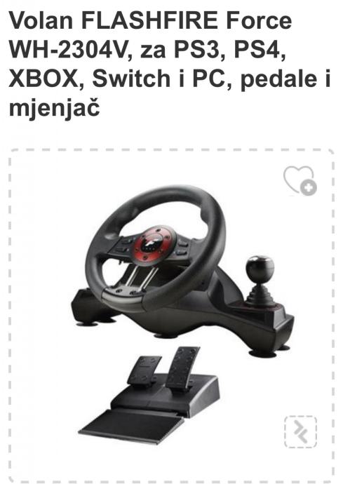 Volan FLASHFIRE Force WH-2304V, za PS3, PS4, XBOX, Switch i PC, pedale i mjenjač.