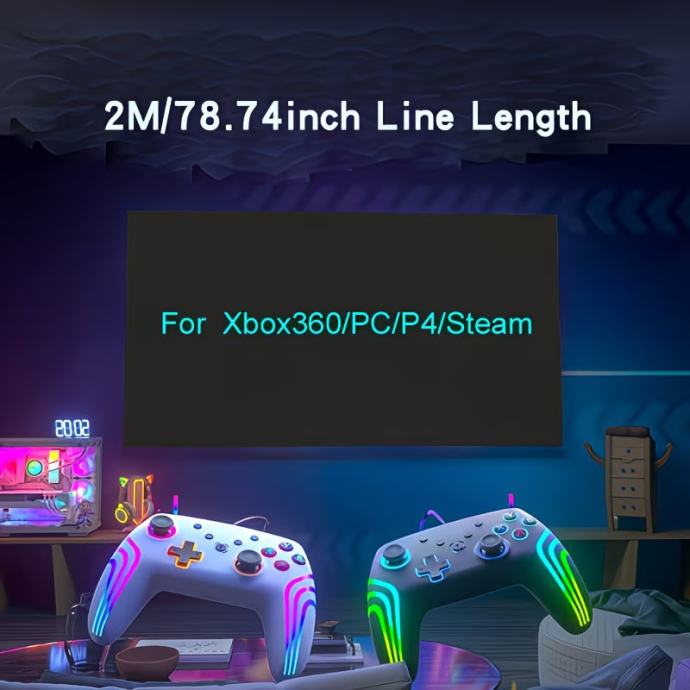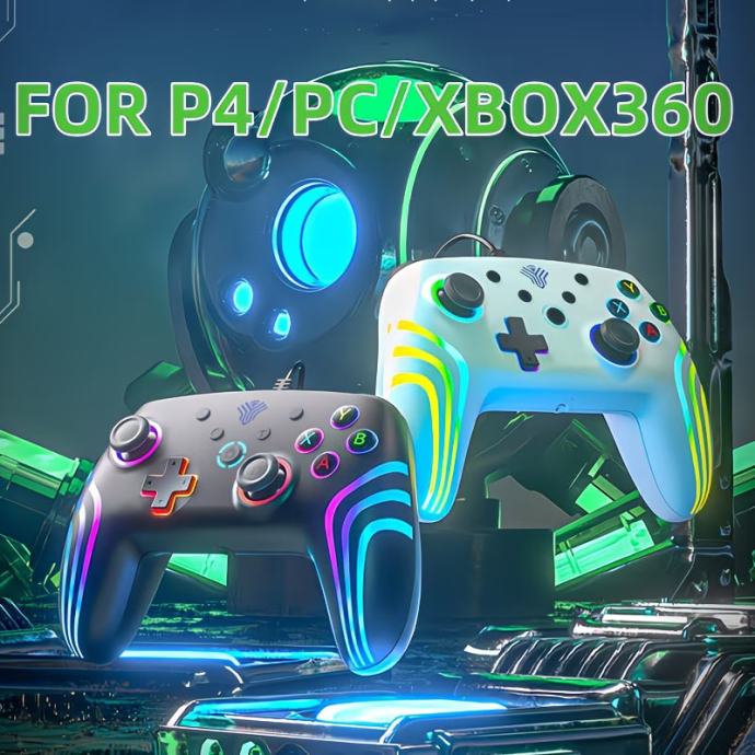 Wired Game Controller Suitable for PS4/XBOX360/PC with RGB Lighting