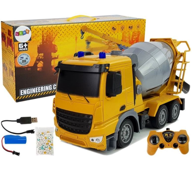 Vozilo ima rotirajuću krušku u koju možete transportirati rastresite materijale ili stvarati beton - šut, pijesak, šljunak, a zatim ih brzo i jednostavno izbaciti na mjesto. Od sada će moći graditi vlastite strukture. Kiper održavan u žutim bojama savršeno pokazuje o kakvom se vozilu radi. U konstrukciji vozila najvažniji detalji i detalji nisu zaboravljeni - svi su istaknuti kontrastnom crnom bojom. Sada je ostalo samo krenuti na gradilište igračaka.
