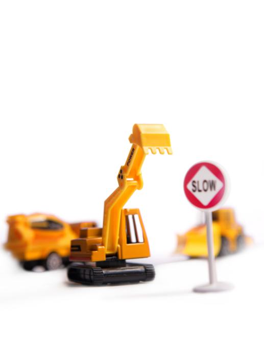 Set uključuje 3 građevinska stroja u žutoj boji.