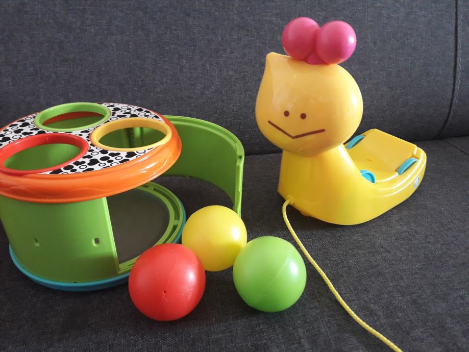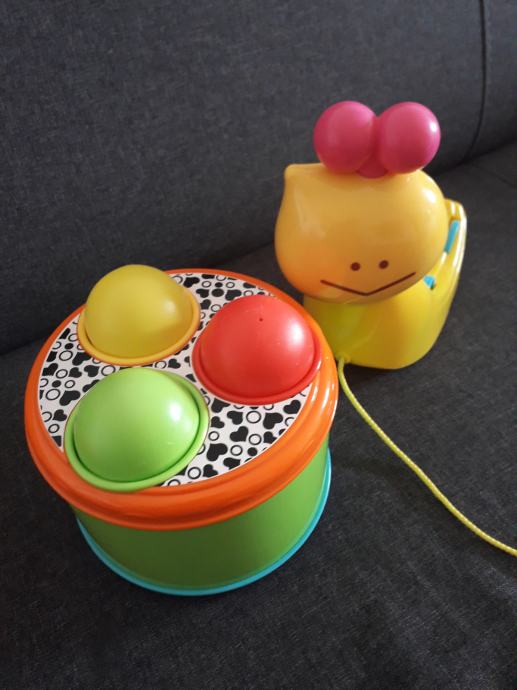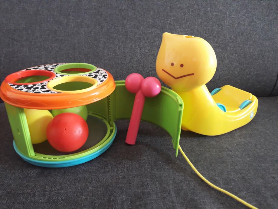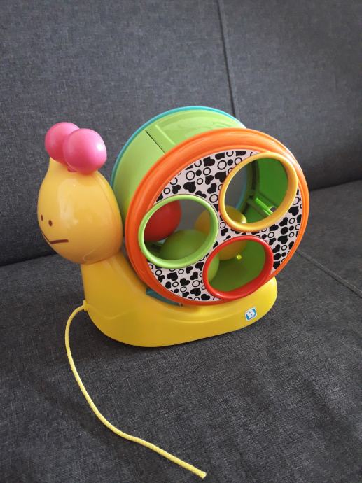Postoji više različitih načina na koji se možete igrati s ovom igračkom, a koja je u obliku puža. Puža možete vući, možete prilagoditi oblike unutar njegove kućice ili ga rastaviti za dodatne igre. Rastavljena igračka tada postaje bubanj, koji pomaže u razvijanju mehaničkih vještina i spretnosti vaše bebe.