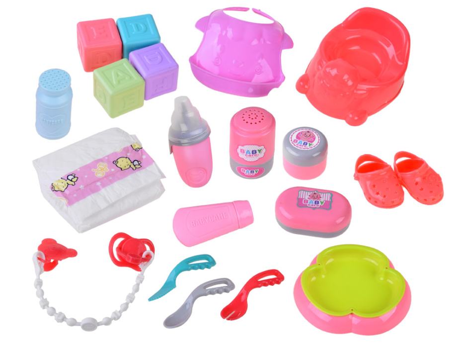 Zahvaljujući dodacima koji su uključeni u set, dijete može okružiti dječju lutku nježnošću i brigom.