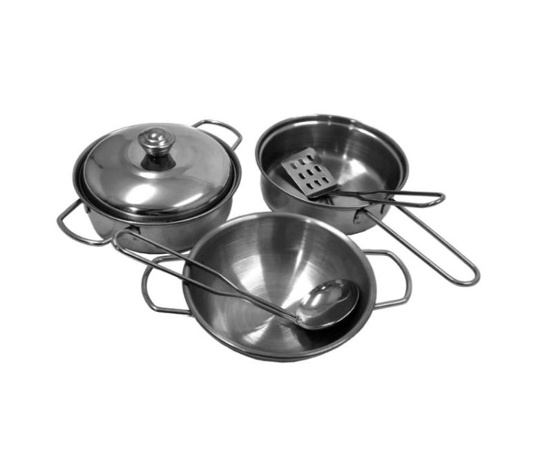 Komplet koji se sastoji od tava od nehrđajućeg čelika i raznih posuđa