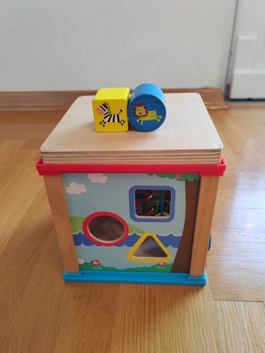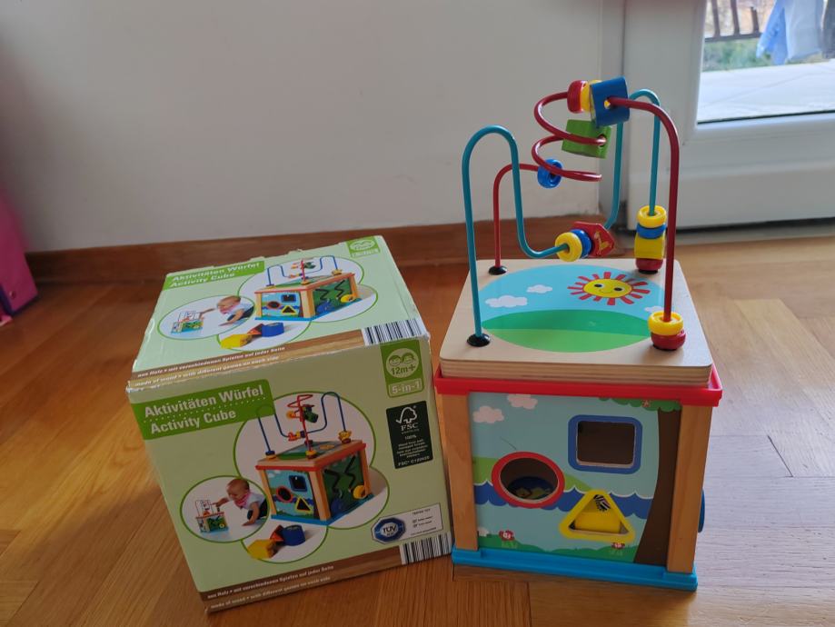 Višefunkcionalna i praktična drvena didaktička igračka –kocka 5 u 1 sadrži pet različitih povoda za igru i zabavu za male ručice.