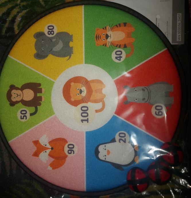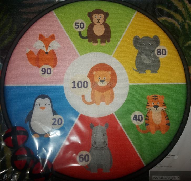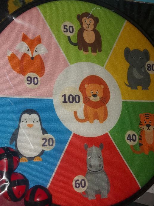 Meta u obliku prijateljskih zivotinjica i 3 lagane plastične loptice s čičkom je sve što vam je potrebno za početak fantastične igre.