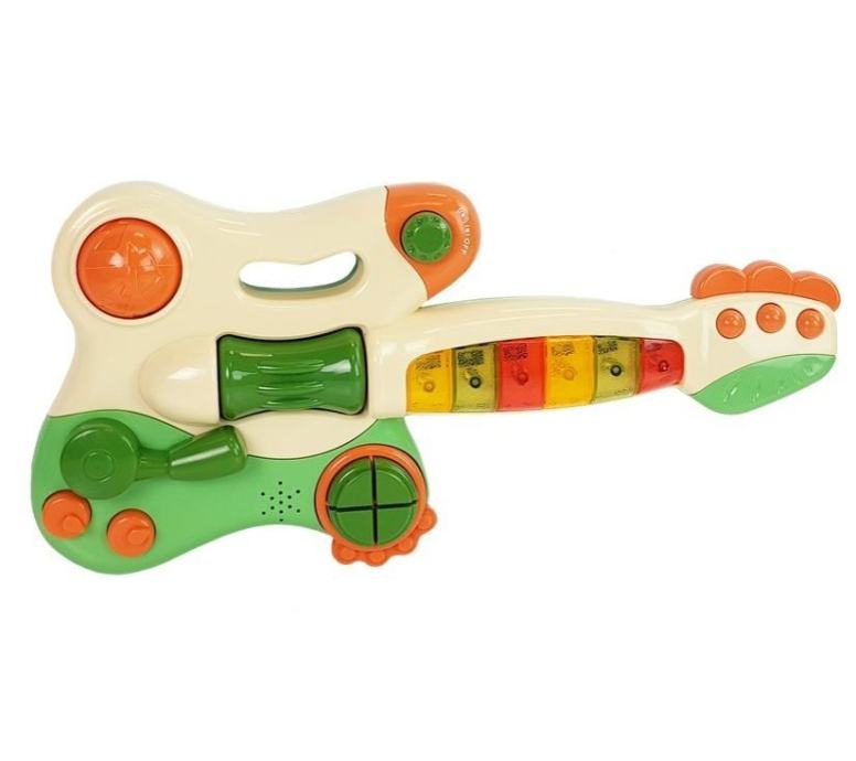 Dok pritiskate tipke za glasovir, tipke svijetle. Instrument igračke ima 3 načina rada i različite melodije - od popa, preko rocka do bluesa. Dijete se može igrati pritiskom na klavirske tipke, kao i pomoću okruglog gumba podijeljenog na četiri dijela i tamnozelenog gumba na vrhu igračke. Zelena poluga, kada se pomakne prema dolje, mijenja pjesmu, kao i cilindar u sredini, koji se može pomicati gore i dolje. U gornjem dijelu igračke nalazi se lopta napunjena graškom - može se savršeno koristiti kao zvečka.