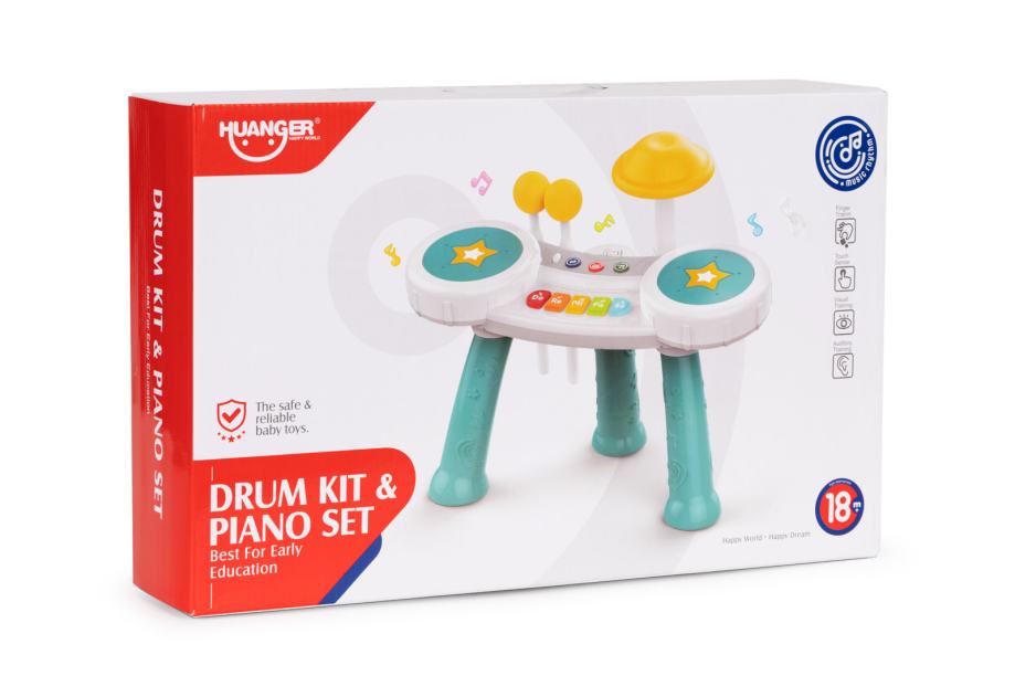 Uz pomoć dvije priložene palice, dijete može svirati kao pravi bubanj. Samo udarite u bubnjeve ili činele da biste čuli njihov zvuk.