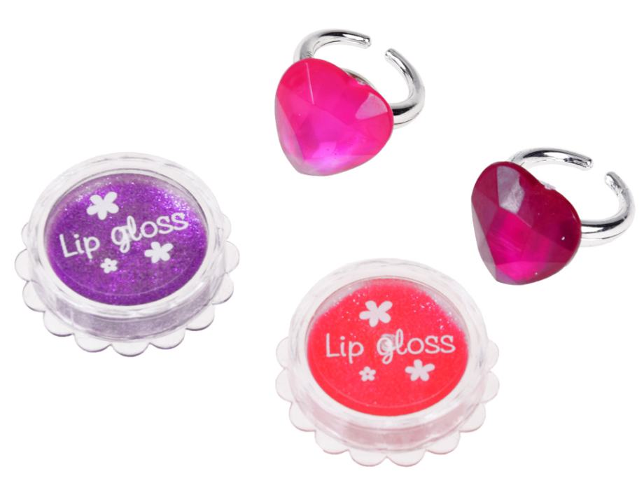 - 2 x prstena sa "plastičnim kamenčićima" u obliku srca
