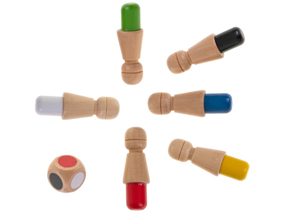 Na ploči su po 4 pješaka svake boje. Ako bacite boju čiji pijuni više nisu na ploči, bacate kocku ponovo dok ne bacite boju čiji su pijuni ostali na ploči.