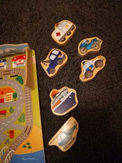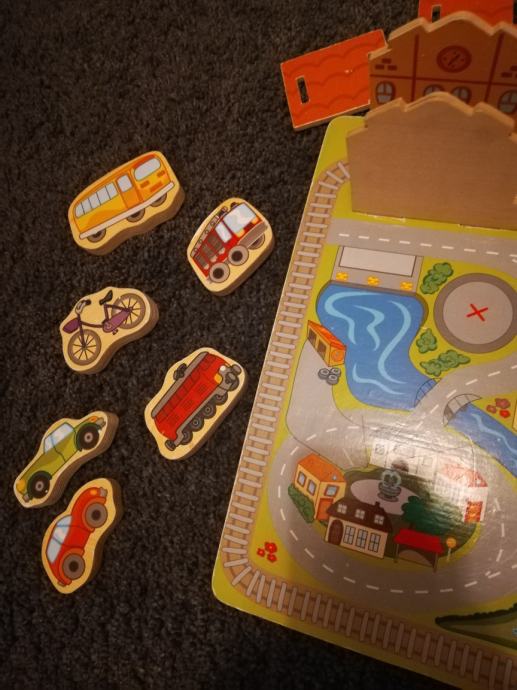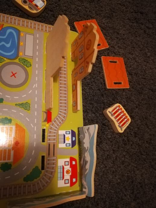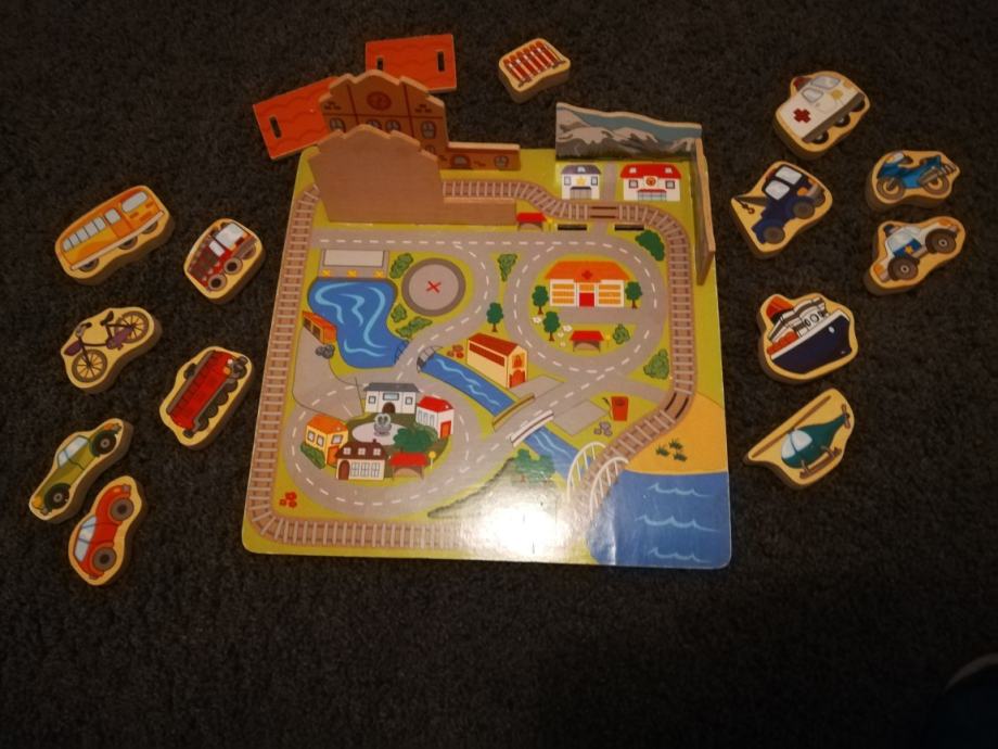 Drvena igračka, staza sa vozilima, uščuvano kao novo.