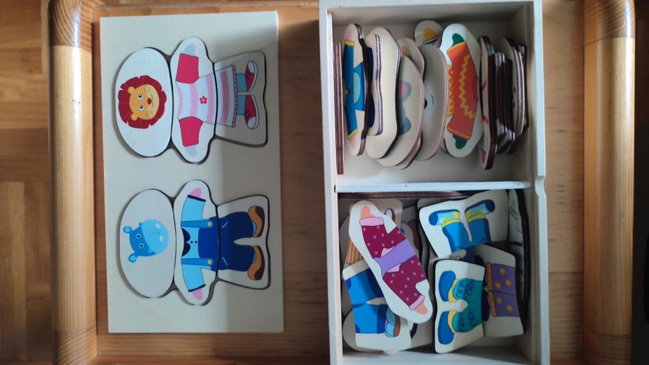 Prodajem odlično očuvani drveni set slagalice. Primjeren za djecu mlađeg uzrasta (do 3 godine).