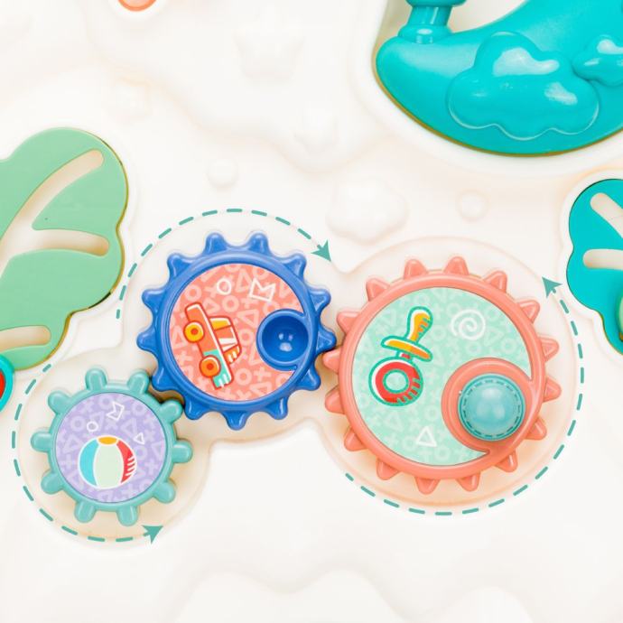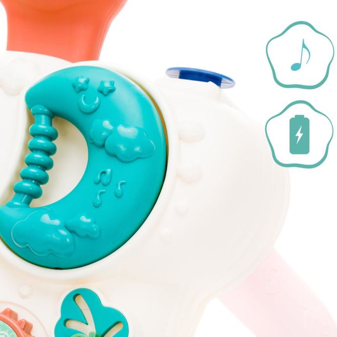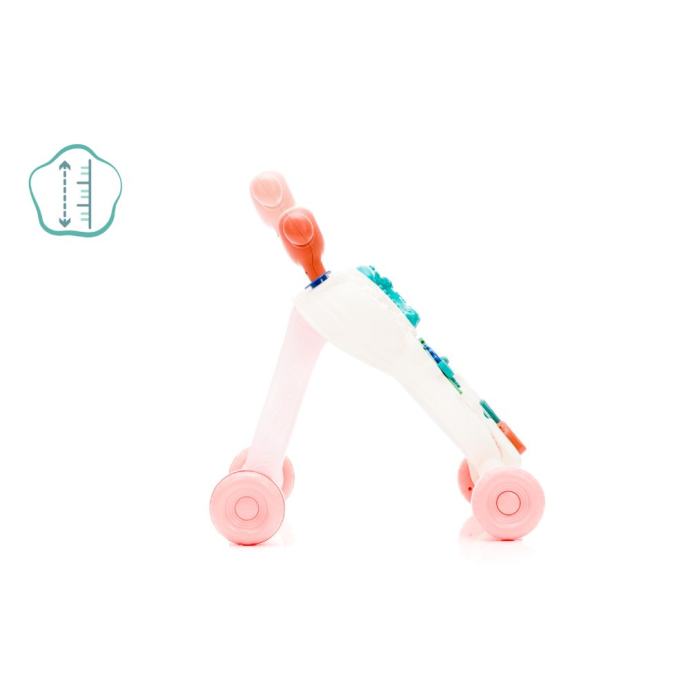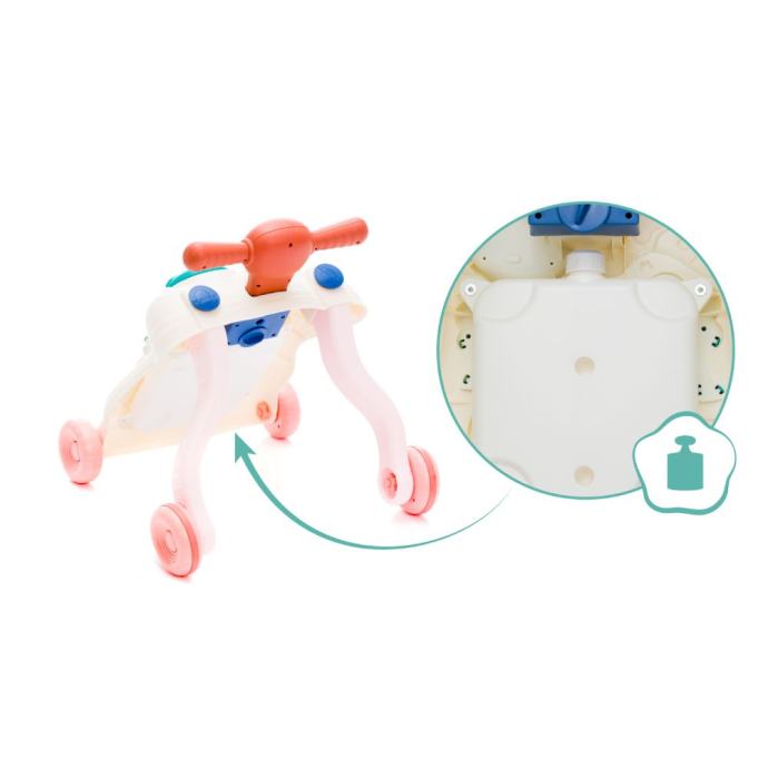 Mala "šasija" dovoljno je široka da podupre dijete i omogući mu samostalno hodanje kasnije. Prednji dio hodalice nudi brojne točke za hvatanje, koje poboljšavaju motoričke sposobnosti i potiču na igru. Tako učenje ne dolazi s mukom, a vaš mališan će uskoro samostalno hodati prema vama.