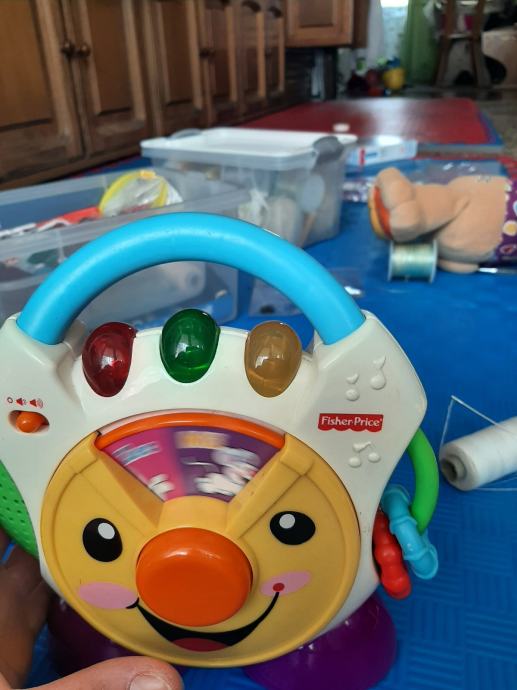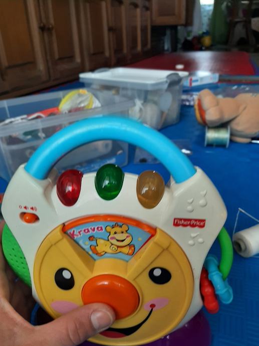 Pritiskom na gumbic vrti se ""CD" I pjeva onu pjesmicu o životinjama na kojoj se zaustavi