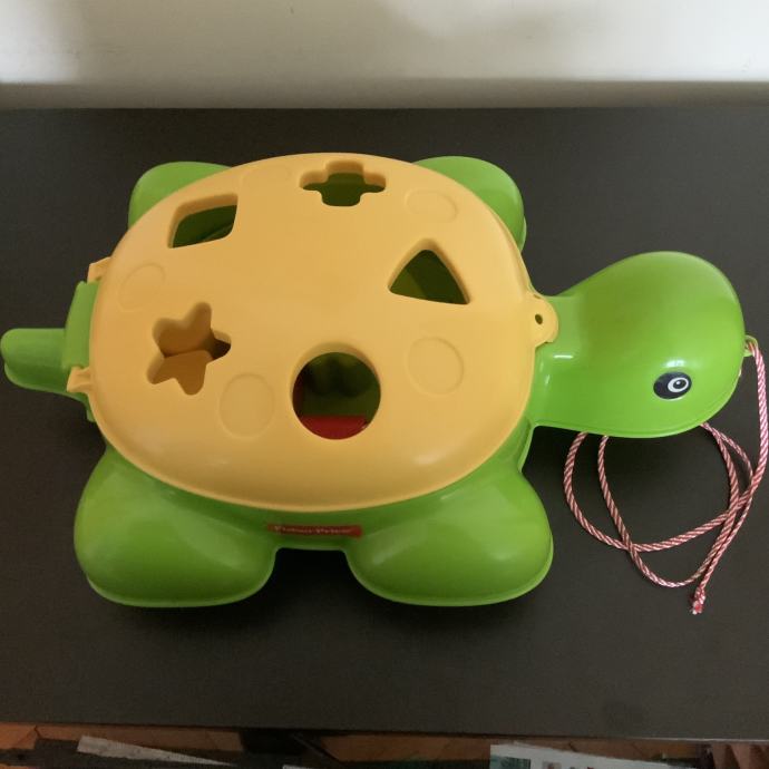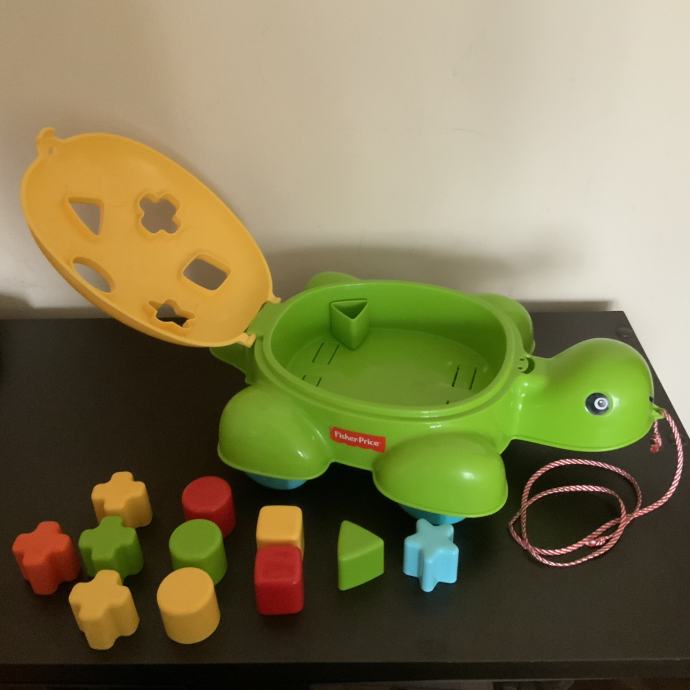 Prodajem Fisher price didaktičku kornjaču s likovima za ubacivanje. Ima 5 različitih oblika, ukupno 12 likova različitih boja. Pomaže djeci u učenju oblika i boja i razvija motoriku pokreta. Dimenzija kornjače 39x25 cm. Ima vezicu za povlačenje. Za dob 1 godina i nadalje.