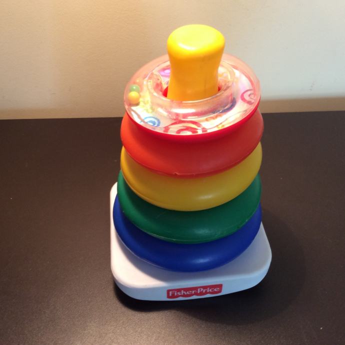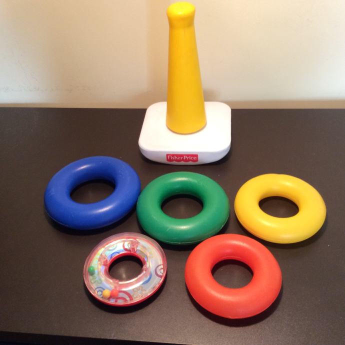 Prstenovi različtih boja i veličina koji se slažu na stup.