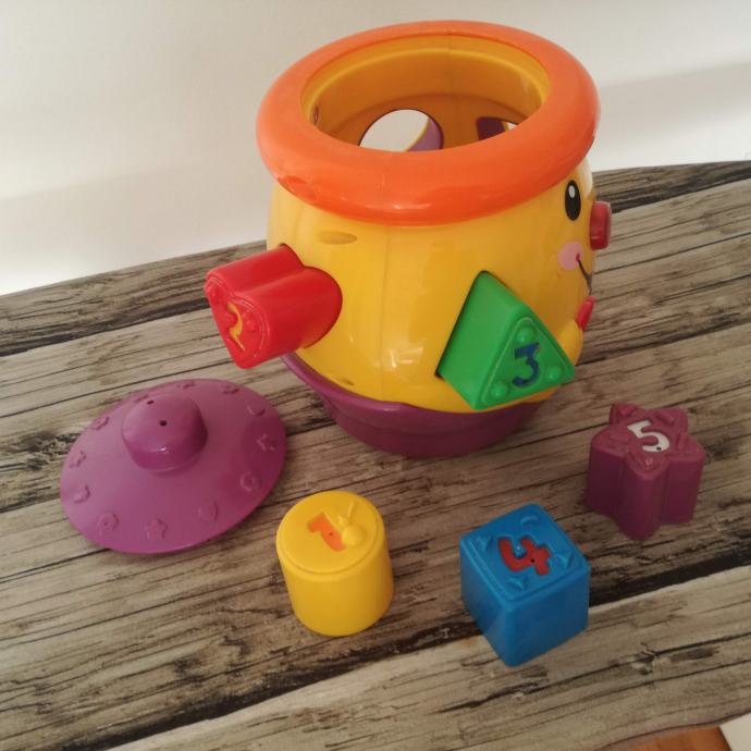 Didaktička umetaljka za dijete od 6 do 36 mjeseci. Odlična interaktivna igračka s dva načina rada za učenje oblika ili brojeva te logično povezivanje oblika s brojevima i koordinaciju oko-ruka kao i vježbanje fine motorike (precizno umetanje kalupa u otvore). Aktivacijom senzora prilikom umetanja kalupa, odnosno vađenja iz lončića, pokreću se zvučni efekti.