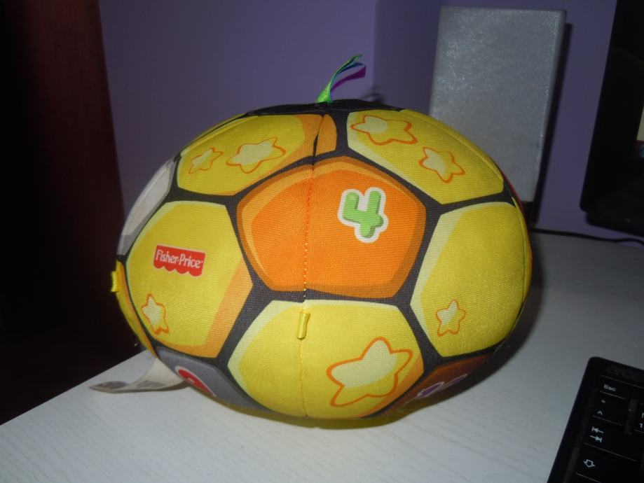 Ova vesela i mekana lopta uči dijete brojeve, brojanje i boje, a sve to uz vesele pjesmice i navijanje. Lopta donosi tri načina igre: uz glazbu, učenje i navijanje. Pritisnite nasmiješeno lice lopte i promijenite način igre. Učenje uz igru zabavnije je i lakše. Loptu jednostavno bacite ili kotrljajte i ona će pjevati 5 različitih pjesmica, govoriti smiješne fraze i podučavati vaše dijete. Iz lopte može izvaditi elektronički uređaj pa se lopta može oprati. Za dijete od 6 mjeseci pa nadalje.
