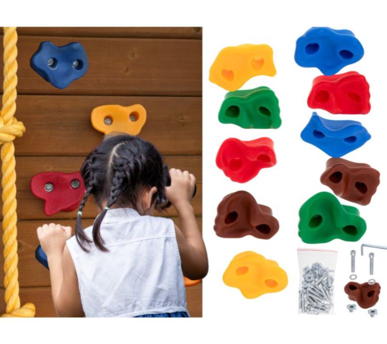 Kamenje dolazi u različitim oblicima, svaki je širok oko 10 cm, što penjaču pruža udoban i siguran zahvat! Što je također vrlo važno, nemaju oštre rubove.
