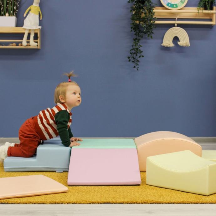 Na početku dijete može koristiti set za puzanje i penjanje, a kako raste, blokovi se mogu koristiti za složenije igre poput gradnje prepreka, konstrukcija ili maštovitih scenarija. Dječja mašta nema granica – blokovi se mogu pretvoriti u kuhinjske elemente, skrovište od dinosaura ili udobno mjesto za odmor i čitanje.