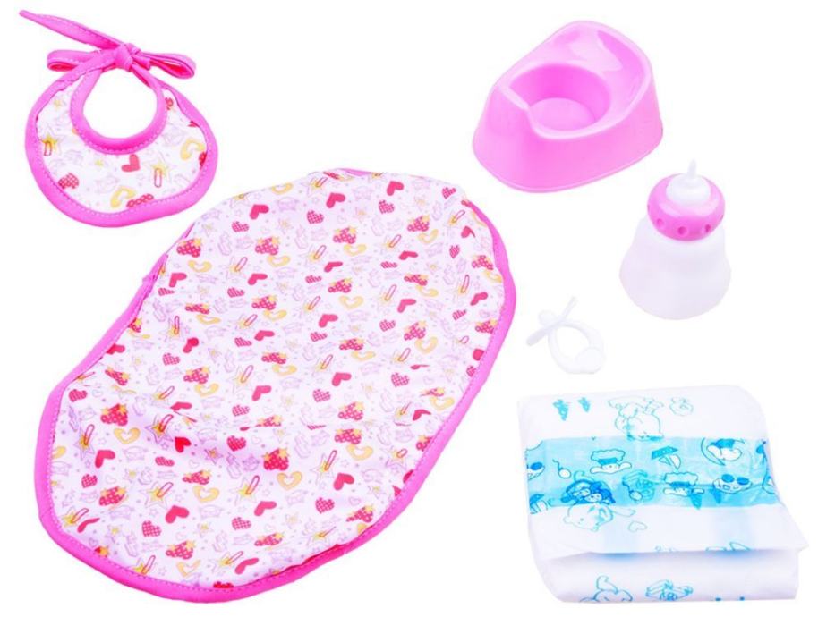 Zahvaljujući dodacima koji su uključeni u set, dijete može brinuti o bebi s nježnošću i brigom.