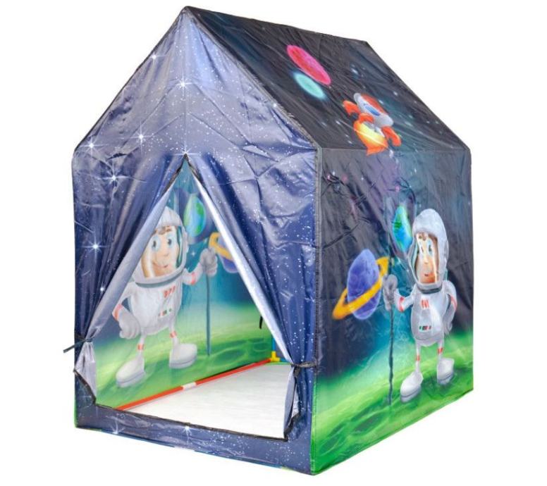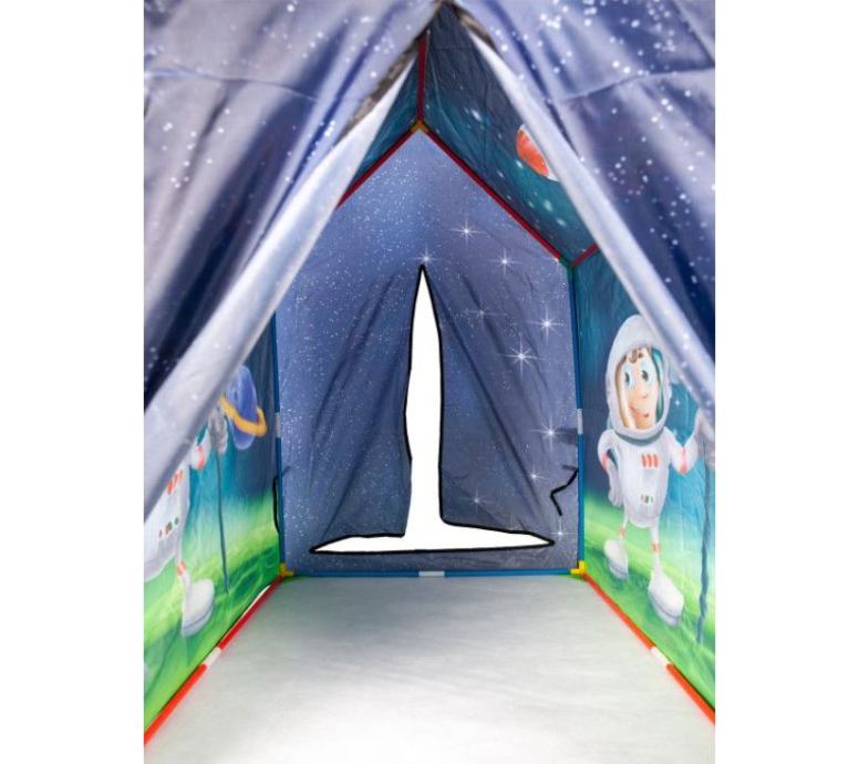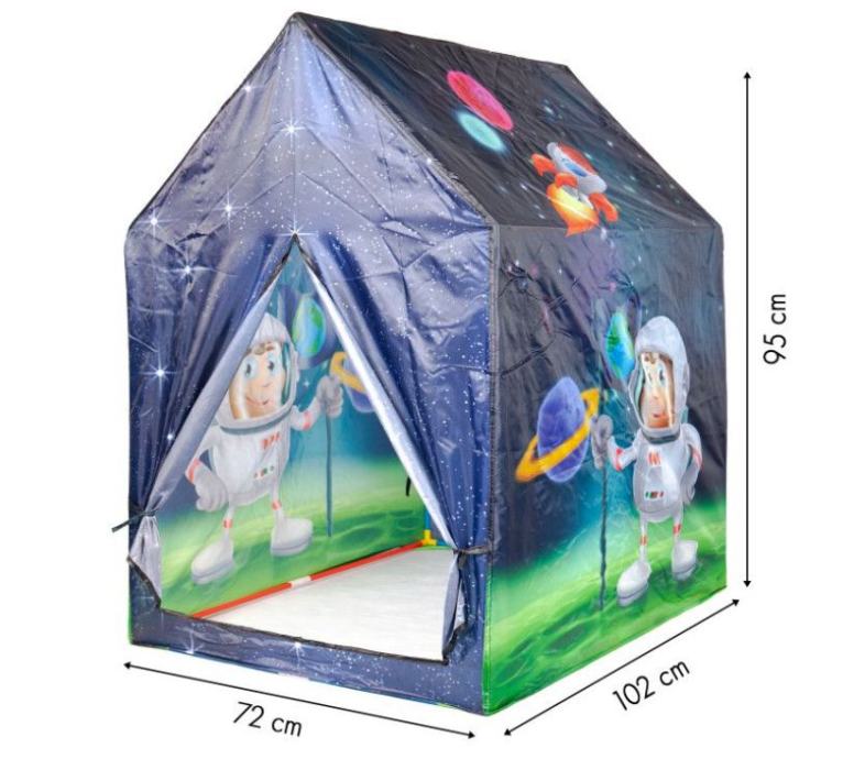 Tema i boje šatora - prostora savršene su za svaku dječju sobu. Šator je izrađen od poliestera, tako da se može postaviti u kući i u vrtu. Šator ima roll-up ulaz sa dvije strane. Okvir šatora sastoji se od plastičnih cijevi i konektora koji se vrlo lako sklapaju i rasklapaju.