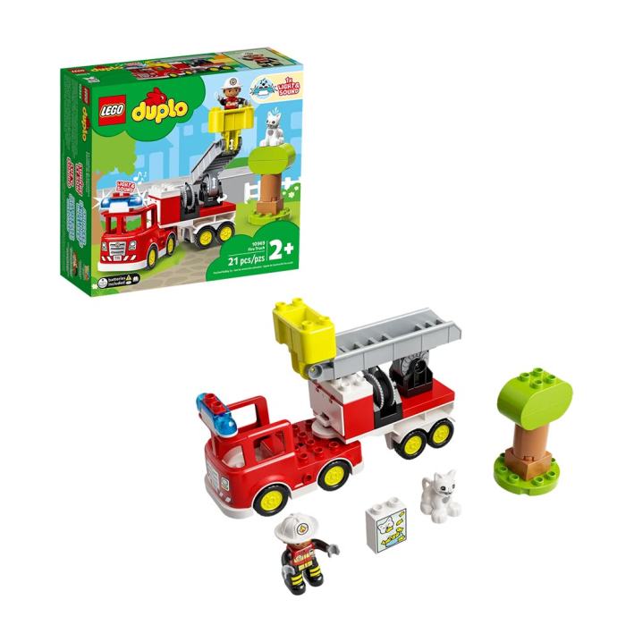 Djeca od 2 godine i starija koja vole vatrogasna vozila bit će oduševljena LEGO DUPLO Vatrogasnim kamionom (10969). Sa simpatičnom mačkom koja treba spasiti i prijateljskim vatrogascem u vozilu punom značajki, ovaj interaktivni set razvija društvene, emocionalne i fine motoričke vještine predškolske djece dok im omogućuje da oponašaju stvarne avanture naših heroja.